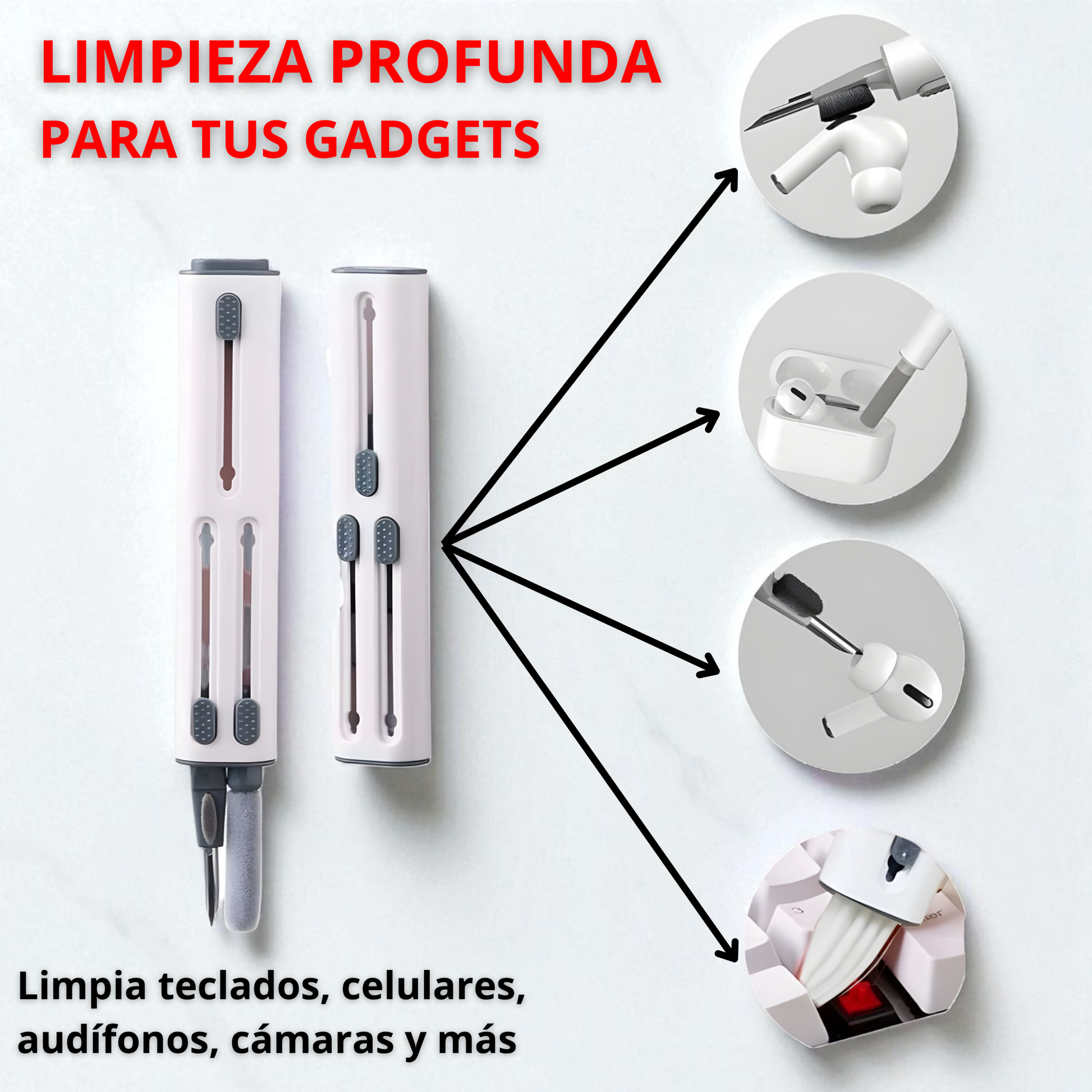 Gracias a su diseño todo en uno, con herramientas finas y cabezales de detalle, podrás limpiar fácilmente teclados, auriculares, puertos de carga, cámaras, laptops, consolas y más, eliminando hasta la suciedad más escondida.