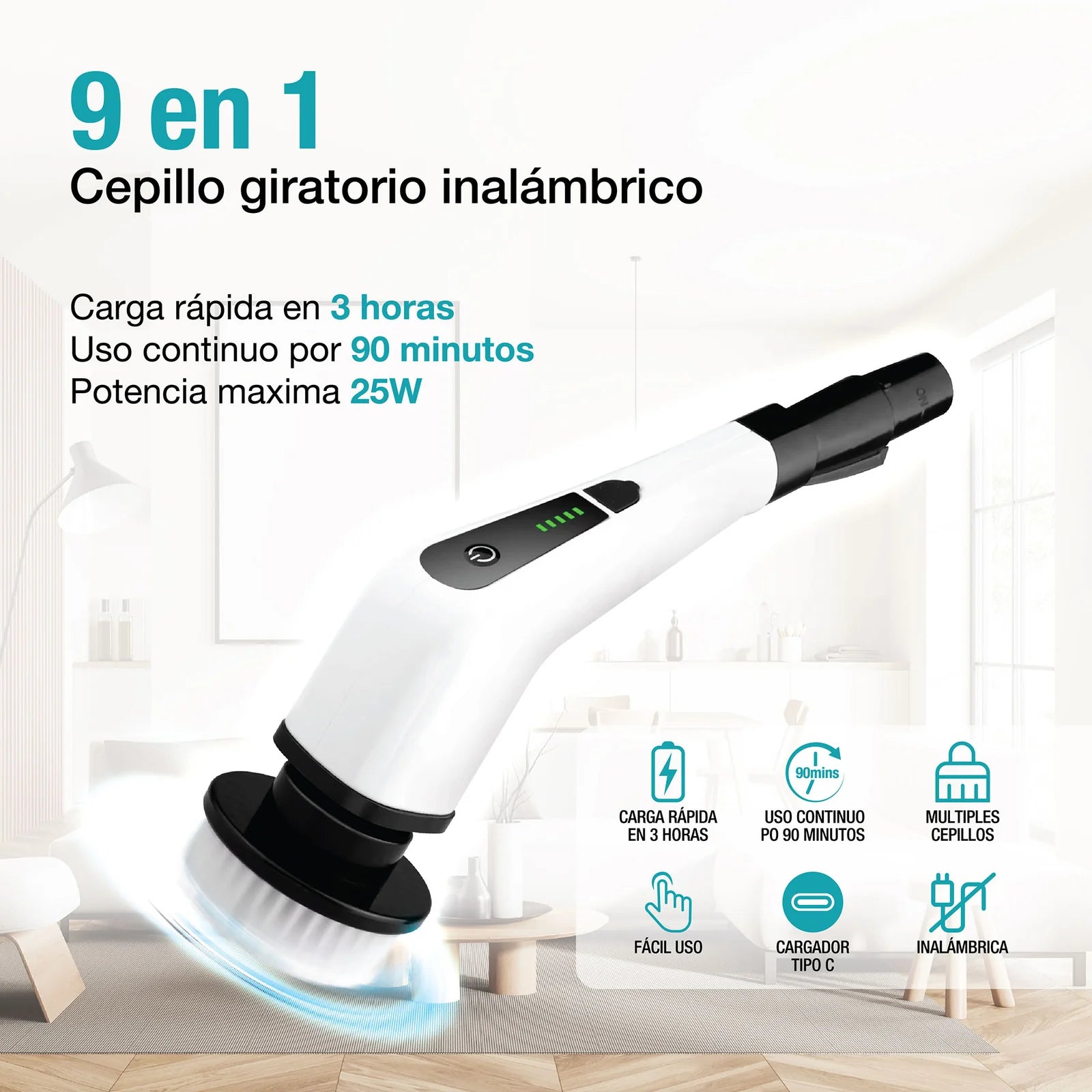 ✅ 9 cabezales intercambiables: adapta la limpieza a cada superficie del hogar.